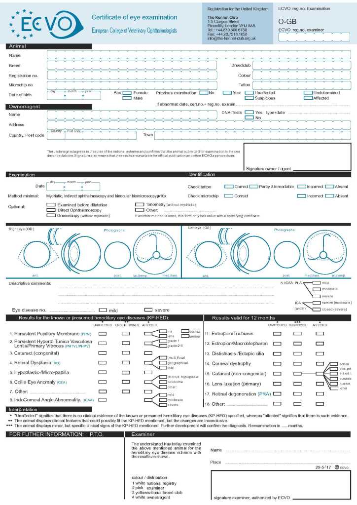 ECVO staat voor European College of Veterinary Ophthalmologists, de Europese organisatie voor dierenoogspecialisten. Dit onderzoek wordt gebruikt om erfelijke oogafwijkingen op te sporen en ouderdieren te screenen op oogaandoeningen.