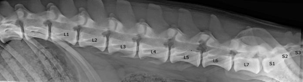 – verandering aan de laatste lendenwervel richting sacralisatie gaat. De L7 is meestal korter en ligt meer caudaal, het dwarsuitsteeksel kunnen er anders uitzien dan normaal;
