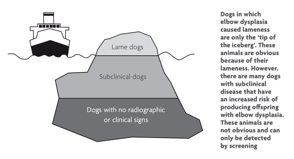 Om te kunnen meten of een hond ED heeft, zijn röntgenfoto’s van zijn gewrichten nodig, dit is mogelijk vanaf een leeftijd van 18 maanden. Het aantal te maken röntgenfoto’s verschilt per ras, bij de aussies worden er vier foto’s gemaakt. Het ED-onderzoek richt zich op eventuele artrose en de volgende vier verschillende aandoeningen van het ellebooggewricht, LPCM, LPA, OCD en incongruentie. Al deze aandoeningen kunnen leiden tot misvormingen in het gewricht en kreupelheid.